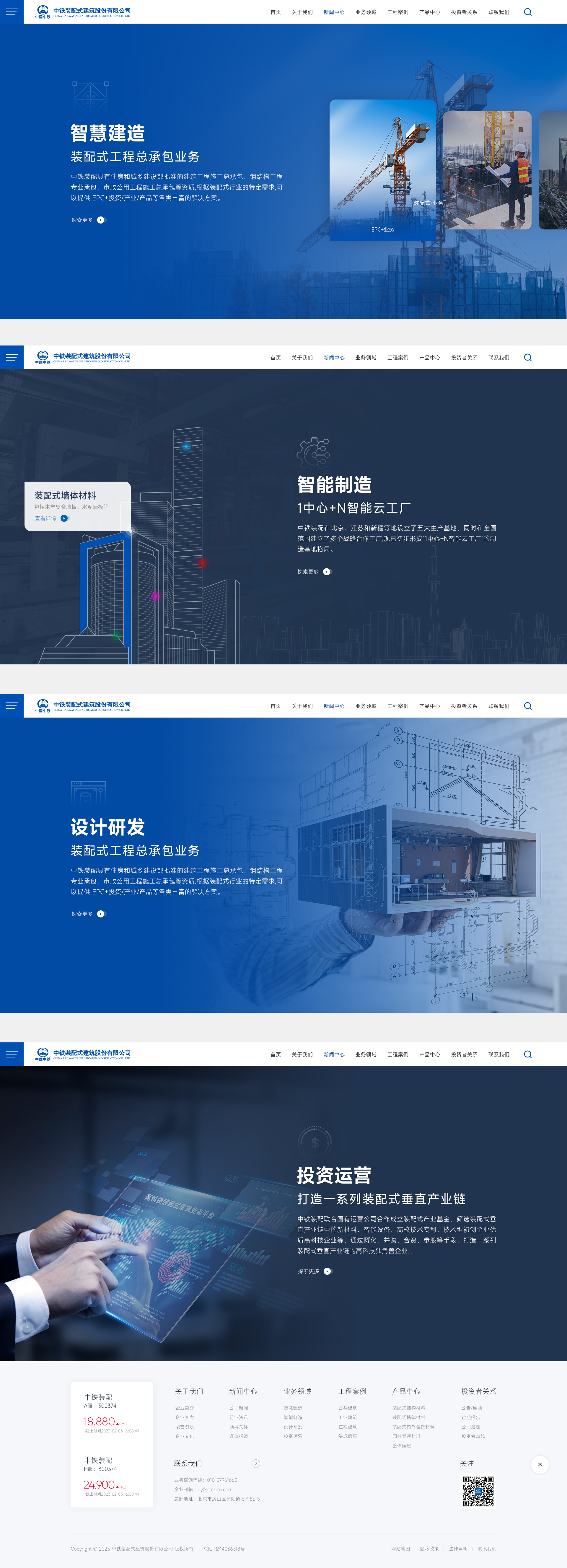中铁装配业务涵盖装配式建筑的设计咨询、产品研发、智能制造、智慧建造、投资开发及运营维管,是国内领先的装配式建筑部品部件供应商和集成商。